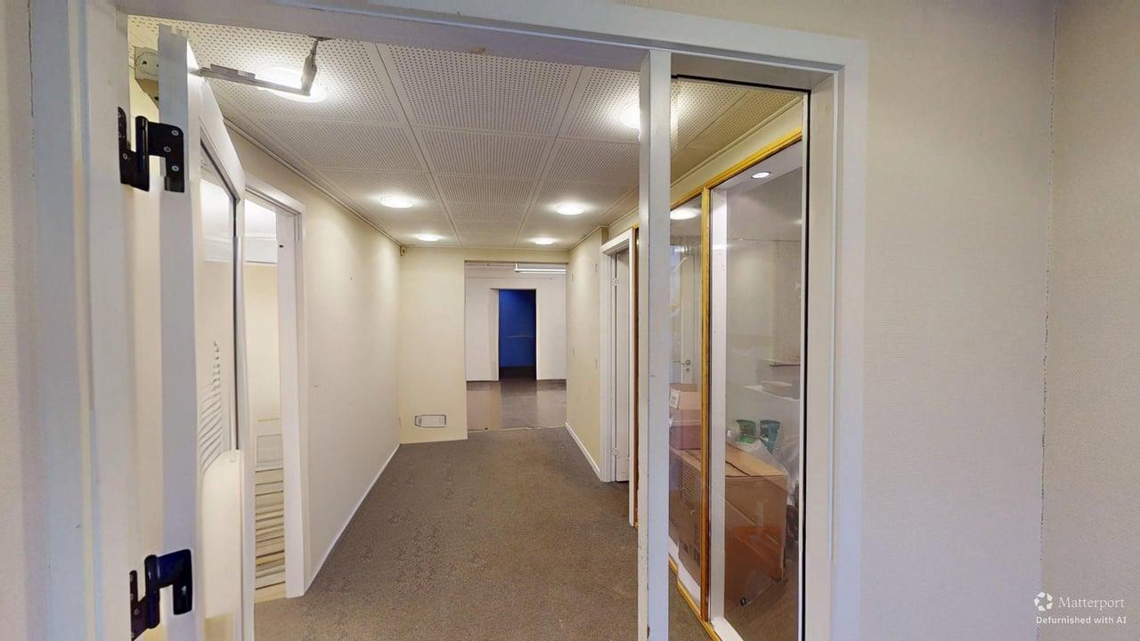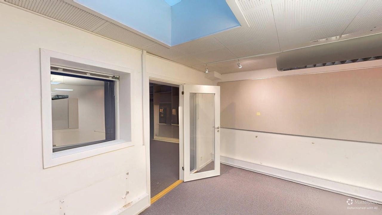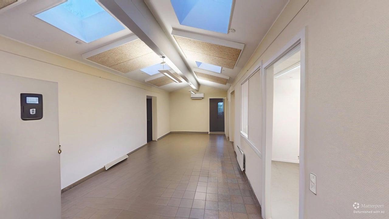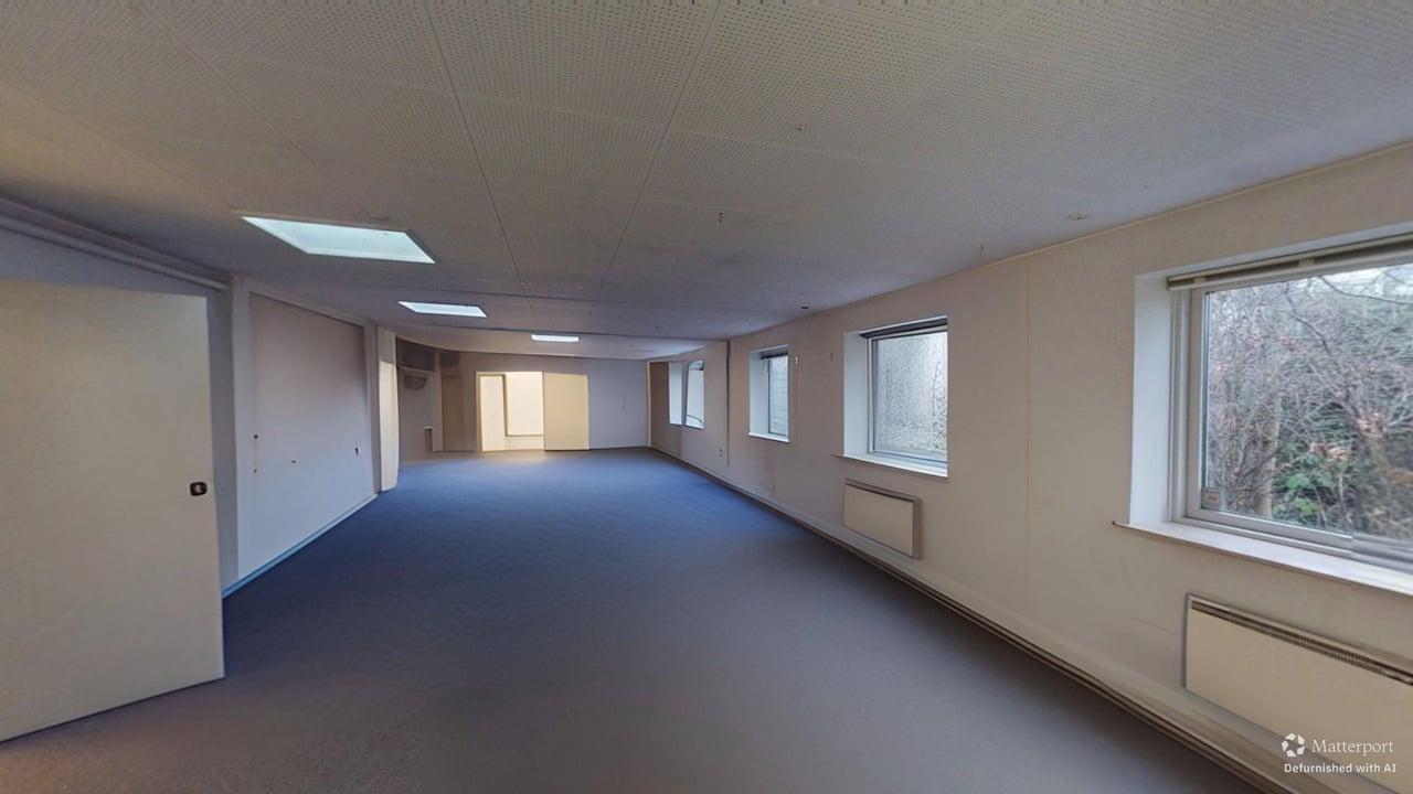 Lyst og rummeligt erhvervslejemål på 280 m² beliggende centralt i Hillerød. Lejemålet består af flere fleksible rum, herunder kontorer, mødelokaler og praktiske opbevaringsområder. Der er et funktionelt tekøkken, gode sanitetsfaciliteter og en kombination af trægulv og tæppebelægning. Store vinduer og ovenlys giver et behageligt naturligt lys i lokalerne.